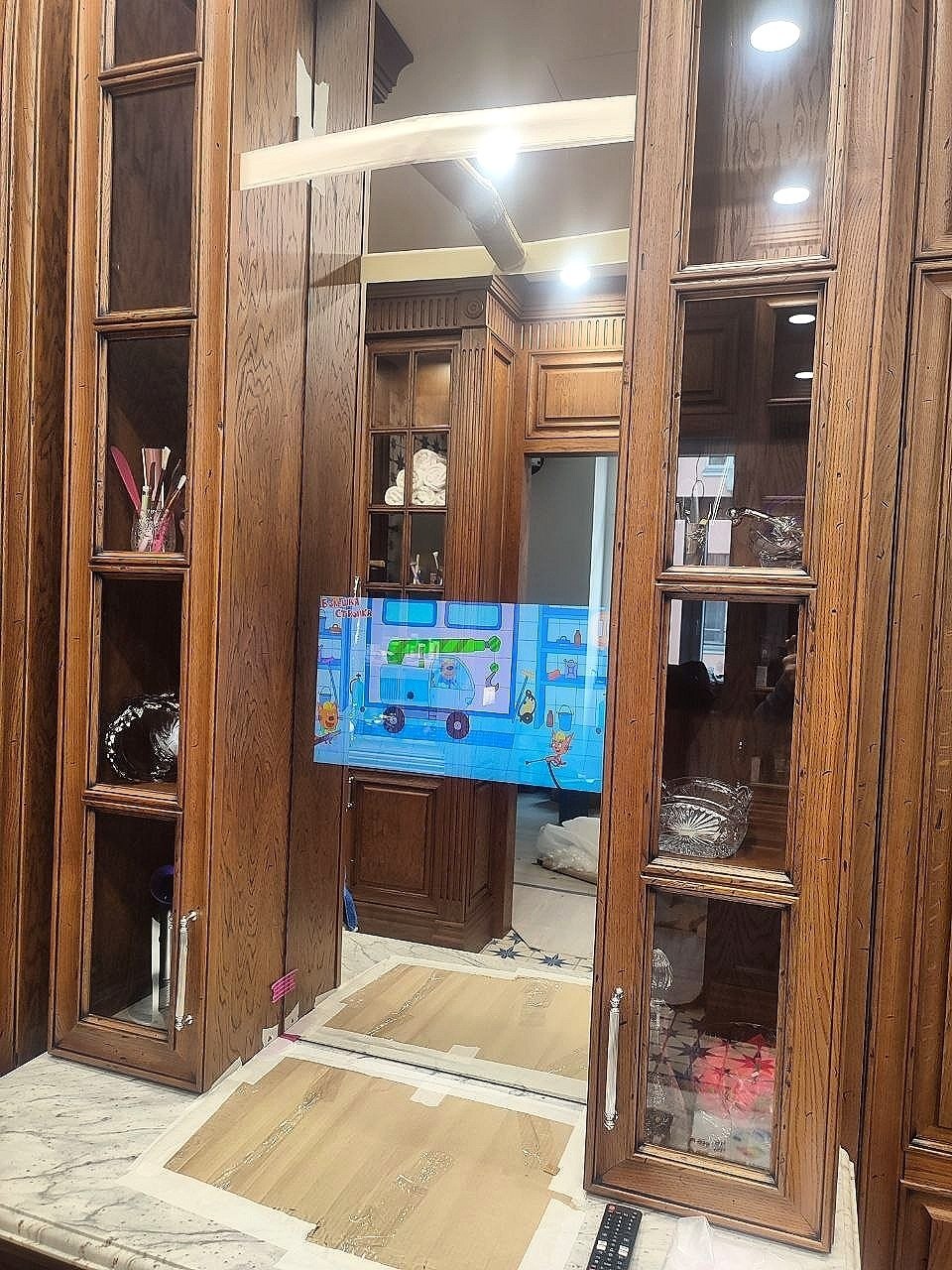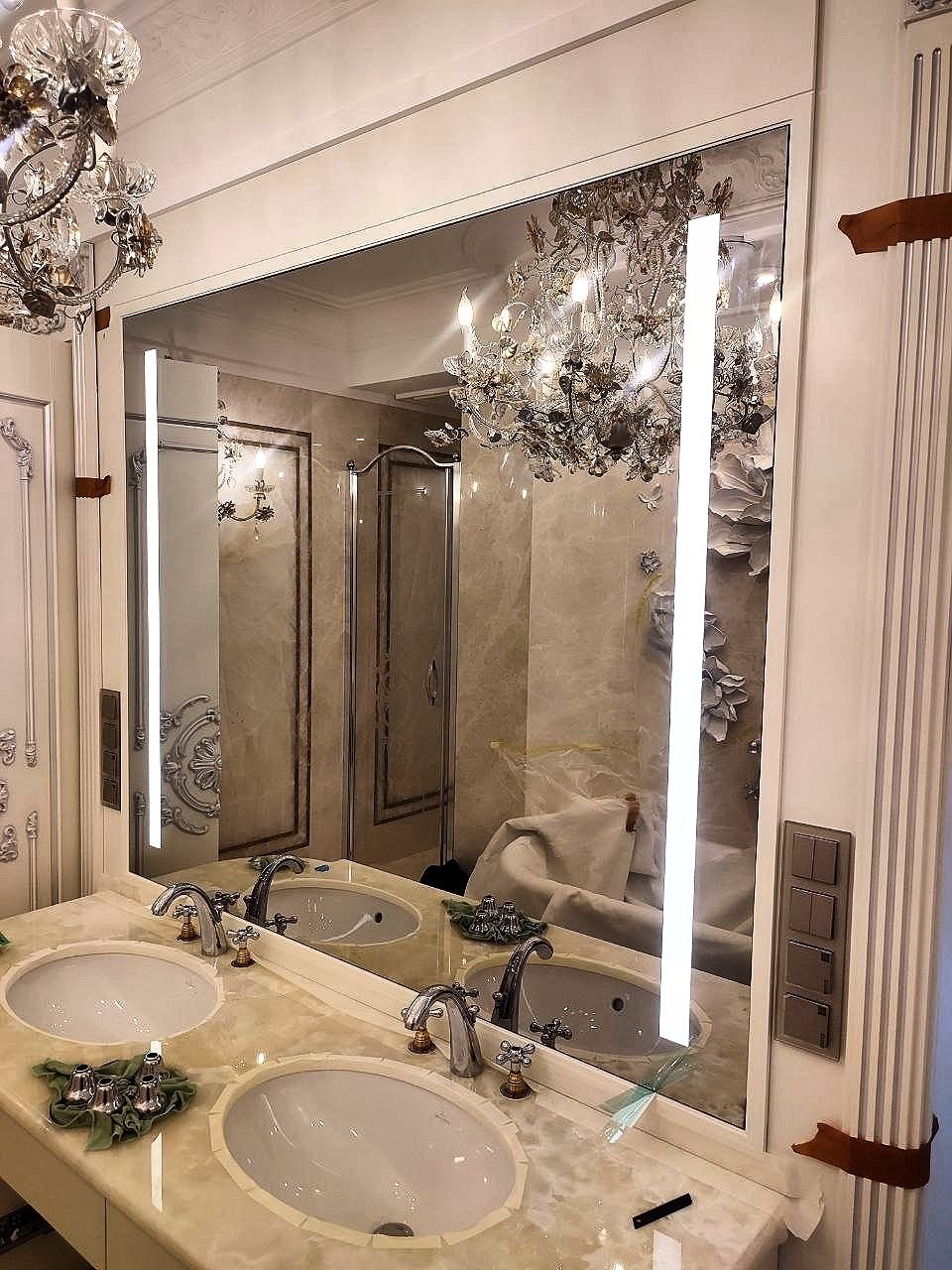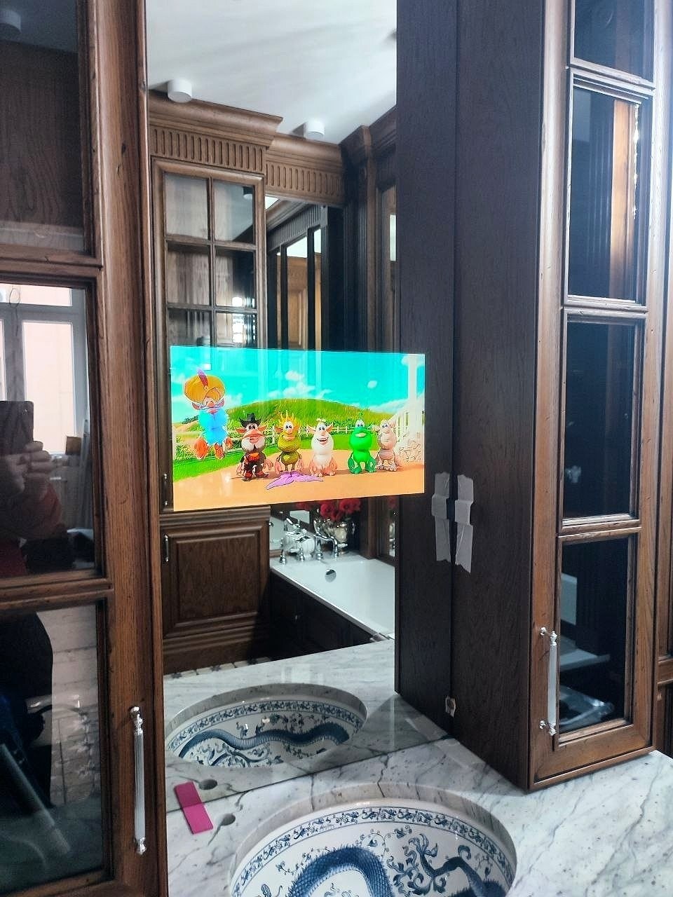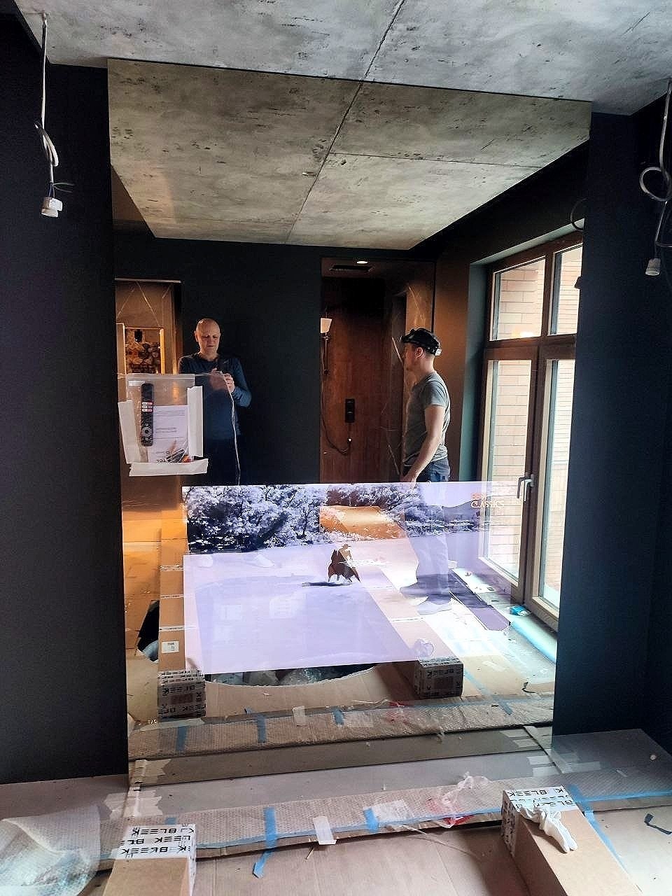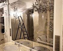 Зеркало ТВ в ванной на улице Мосфильмовской. Частный заказчик.